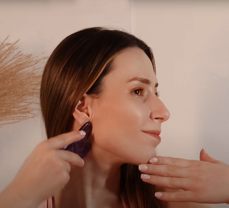 The chin has a rich lymphatic system. As long as applying correct gua sha technique, consistently daily gua sha helps to promote blood circulation, improve lymph nodes, it helps to reduce and even eshape double chin.;