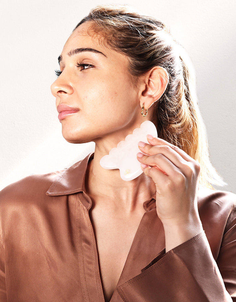 3.Finish: After Gua Sha is finished, wipe the oil from the skin with a wet towel and continue with the following skin care steps.